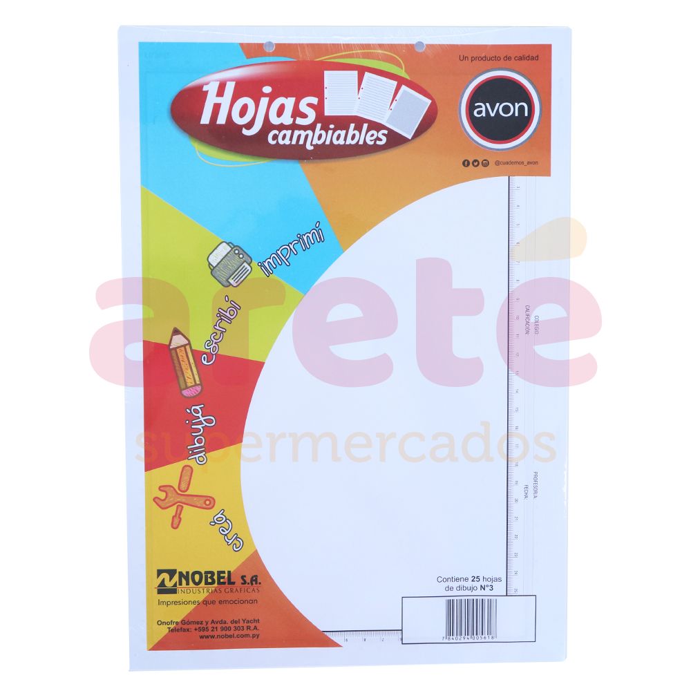 HOJAS DE DIBUJO AVON N°3 X25 UNDS