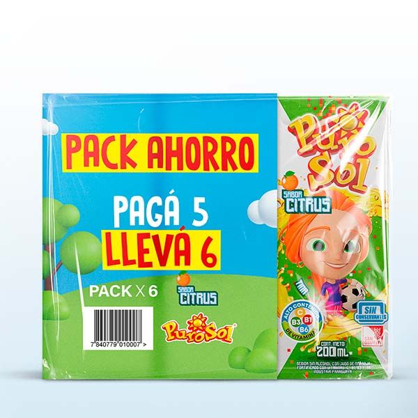 PACK DE JUGO PUROSOL CITRUS PAGUE 5 LLEVE 6 200ML