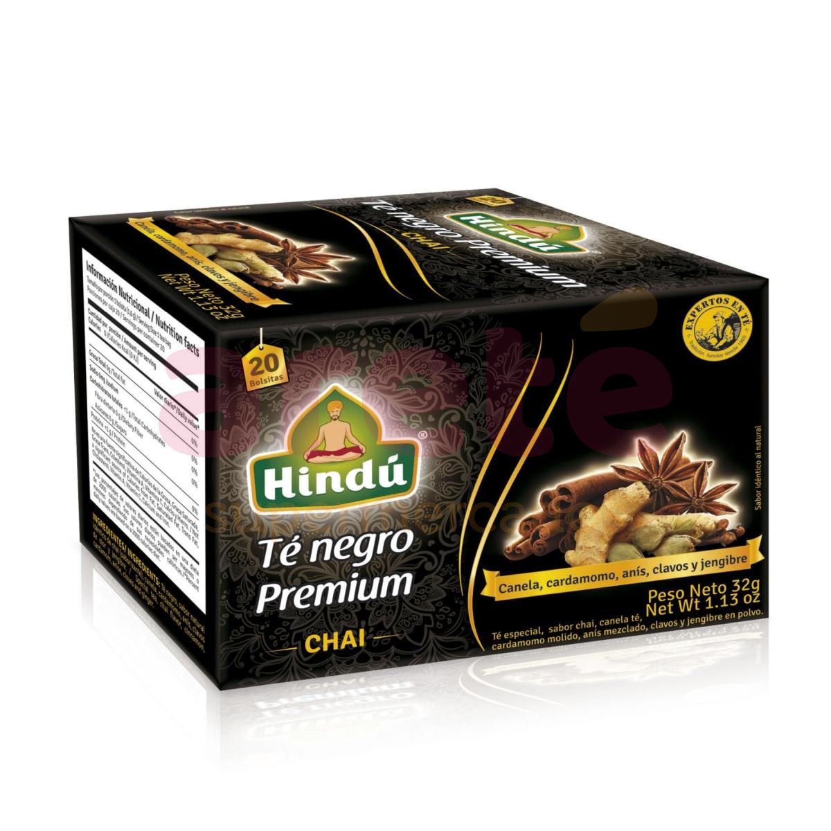 TE NEGRO HINDU PREMIUN CON SABOR CHAI CAJA 20SAQ